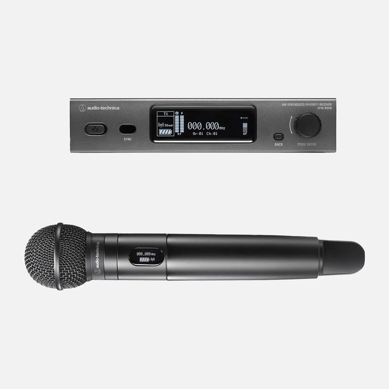 Este sistema incluye un transmisor portátil equipado con una cápsula de micrófono cardioide dinámico intercambiable ATW-C510 optimizada para voz y habla. El transmisor proporciona hasta 9,5 horas de funcionamiento con dos baterías recargables AA NiMH (disponibles por separado), con una potencia de salida de RF seleccionable de 10/30 mW para superar las interferencias en entornos de RF difíciles. El rango de transmisión es de hasta 330 pies. Pueden funcionar hasta 40 canales de micrófono simultáneamente en cada banda de frecuencia.