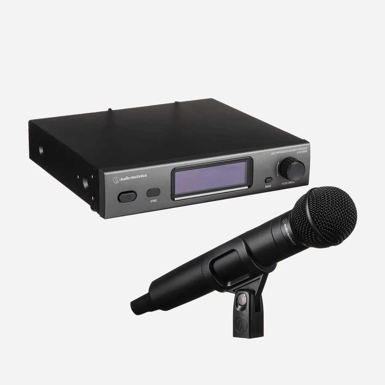 El ATW-3212 incluye un receptor de medio rack alojado en un chasis robusto, totalmente metálico, con antenas extraíbles, ideal para montaje en rack en cajas de transporte portátiles o instalaciones permanentes. La función de escaneo automático del receptor busca entre 2395 frecuencias seleccionables, buscando un canal limpio y sin interferencias para su transmisión de audio. La serie 3000 le permite configurar una frecuencia de respaldo limpia con antelación, a la que puede cambiar rápidamente con solo presionar el botón multifunción del transmisor en caso de interferencias inesperadas.